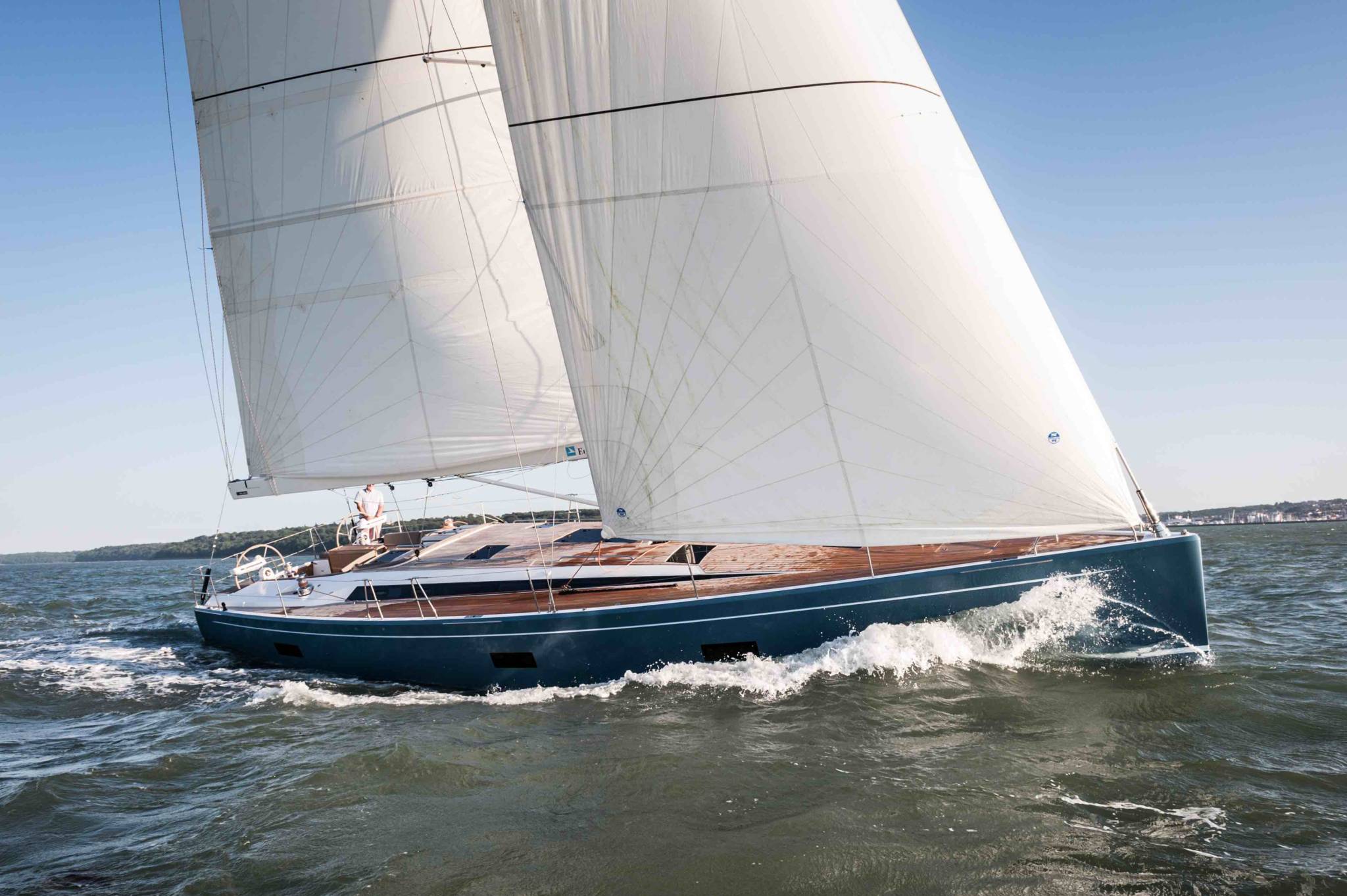 Su timón está fabricado en fibra de carbono y controlado a través de la dirección de doble cojinete de JP3. El equipo estándar está construido alrededor de un mástil de aluminio de Seldén, si bien el barco que hemos tenido oportunidad de probar recientemente equipaba un mástil de carbono fabricado por Hall.